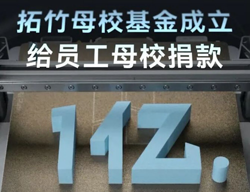 1月27日,拓竹科技微信公眾號(hào)發(fā)文稱,成立“拓竹母?;?rdquo;并向員工母校捐贈(zèng)1億元。文章稱,每個(gè)員工的專業(yè)都不一樣,有的來自文理工科,也有藝術(shù)、設(shè)計(jì)出身,或以職業(yè)技術(shù)見長。綜合不同領(lǐng)域的人才來源,拓竹科技選出了對(duì)公司人才貢獻(xiàn)密度排名前十的高校,包括電子科技大學(xué)、哈爾濱工業(yè)大學(xué)、華南理工大學(xué)、華中科技大學(xué)、上海交通大學(xué)、深圳職業(yè)技術(shù)大學(xué)、西安交通大學(xué)、香港科技大學(xué)、中國科學(xué)技術(shù)大學(xué)和中國美術(shù)學(xué)院。