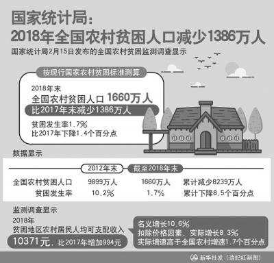 2018年全國(guó)農(nóng)村貧困人口減少1386萬(wàn)人
