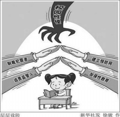 層層設(shè)防 新華社發(fā) 徐駿/作近日,新城控股原董事長王振華涉嫌猥褻女童案引發(fā)社會(huì)高度關(guān)注,而更多的性侵幼童案件因?yàn)樾郧终呱矸萜胀?、受害兒童身份普通,而沒得到太多關(guān)注。