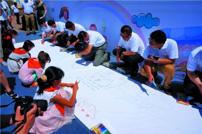 在活動現(xiàn)場,小朋友們拿起畫筆,畫出自己心中的家。一位留守兒童畫了一個大大的房子,房子旁邊是汽車,他告訴記者:“房子里畫的是爸爸、媽媽和我。”一幅小小的畫作已經表達了孩子心里的聲音。