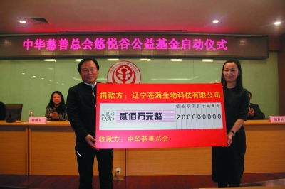2018年3月7日,中華慈善總會悠悅谷公益基金啟動儀式在北京舉行。全國工商聯(lián)原副主席王治國,中華慈善總會秘書長邊志偉,中華慈善總會大眾慈善促進委員會執(zhí)行會長張倩玉,遼寧蒼海生物科技有限公司董事長趙世航、總經(jīng)理杜艷等領(lǐng)導(dǎo)、企業(yè)家和20余家媒體出席本次啟動儀式。