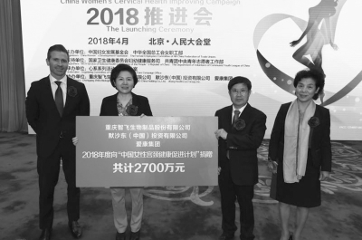 中國婦女發(fā)展基金會(huì)理事長(zhǎng)孟曉駟代表基金會(huì)接受了重慶智飛生物制品股份有限公司、默沙東(中國)投資有限公司和愛康集團(tuán)向“中國女性宮頸健康促進(jìn)計(jì)劃”項(xiàng)目的2018年度捐贈(zèng),并為上述企業(yè)頒發(fā)了捐贈(zèng)證書。