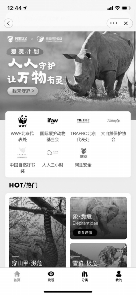 在野生動植物保護(hù)領(lǐng)域,阿里巴巴已持續(xù)投入近20年。從2000年開始,阿里就和國際性組織國際愛護(hù)動物基金會(IFAW)、國際野生物貿(mào)易研究組織(TRAFFIC)長期合作,致力于禁止野生物特別是象牙的網(wǎng)上交易。此后,魚翅、熊膽、海龜、活體螢火蟲等超過3萬多個(gè)物種進(jìn)入阿里的禁售名錄,甚至對相關(guān)捕獵工具也進(jìn)行嚴(yán)格管控和打擊。