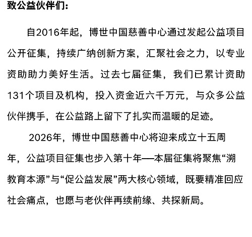 博世慈善 | 第八屆公益項(xiàng)目征集正式啟動(dòng)