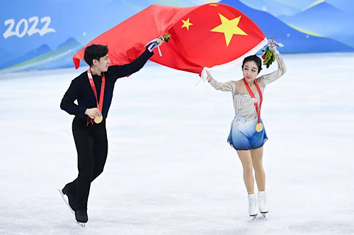 2022年2月19日,北京冬奧會花樣滑冰雙人滑比賽,隋文靜/韓聰奪冠。圖片來源:新華社