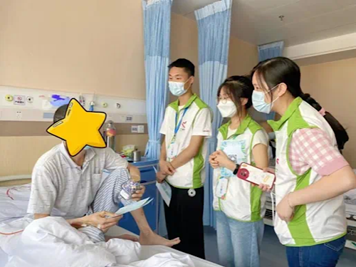 關(guān)娜妹:2020年開始加入廣州醫(yī)科大學(xué)附屬第一醫(yī)院的醫(yī)務(wù)社工團(tuán)隊(duì)。日常工作分為兩部分:第一,院內(nèi)服務(wù)是工作的重點(diǎn),包括為重大疾病患者、家屬、醫(yī)務(wù)人員提供多樣化服務(wù)及支援。圍繞提升患者院內(nèi)生活質(zhì)量、促進(jìn)院內(nèi)關(guān)系協(xié)調(diào)、營造醫(yī)院友好環(huán)境這三個(gè)維度為醫(yī)患、照顧者提供經(jīng)濟(jì)、心理、支持、社會(huì)等層面的服務(wù),以協(xié)助患者鏈接對(duì)應(yīng)資源,減輕經(jīng)濟(jì)負(fù)擔(dān),緩解患者的心理負(fù)擔(dān);為患者賦能,提升健康生活的能力等。第二,為院內(nèi)外整合服務(wù),與我在院內(nèi)的工作相互促進(jìn),主要為整合志愿服務(wù)力量為其搭建互動(dòng)與關(guān)愛平臺(tái),通過健康公益活動(dòng)進(jìn)社區(qū)、進(jìn)家庭、進(jìn)企業(yè)及品牌項(xiàng)目宣傳等形式,不斷維系醫(yī)療志愿服務(wù)隊(duì)伍、加大醫(yī)務(wù)社工服務(wù)感知宣傳,擴(kuò)大醫(yī)務(wù)社工影響力。