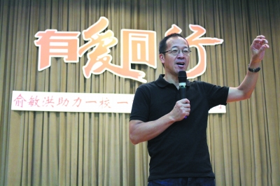 一站到臺上,俞敏洪就表達了自己參與公益不喜張揚的原則。“其實之前說主題活動要帶上我的個人符號,叫‘俞愛同行’,我堅決不同意。后來標題倒是去掉了我的名字,可你們看下面一行字‘俞敏洪助力一校一夢想什邡公益行’又把我的名字加上去了。哎呀,真是不好意思!”臺下觀眾哈哈笑,臺上俞敏洪嘿嘿笑。
