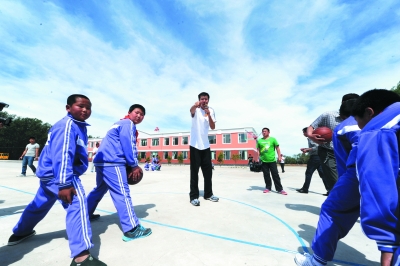 王治郅:2012年去西藏阿里的學(xué)校和學(xué)生們比賽。這是一所建在山上的學(xué)校,校內(nèi)基本就一個(gè)國(guó)旗桿和一棟破舊校舍,比賽中,籃球不慎掉入山崖下面去了,孩子們只好背著書(shū)包和干糧下山撿球。據(jù)老師們說(shuō),下山上山一個(gè)來(lái)回得用上一天時(shí)間??吹竭@種情況真的令我有些驚訝,我捐出了10個(gè)籃球給學(xué)校,希望孩子們能夠有足夠多的比賽用球。