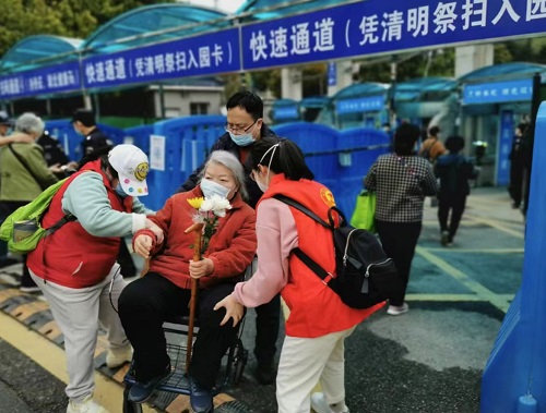 2022年4月5日,志愿者參與扁擔(dān)山公墓祭掃志愿服務(wù)