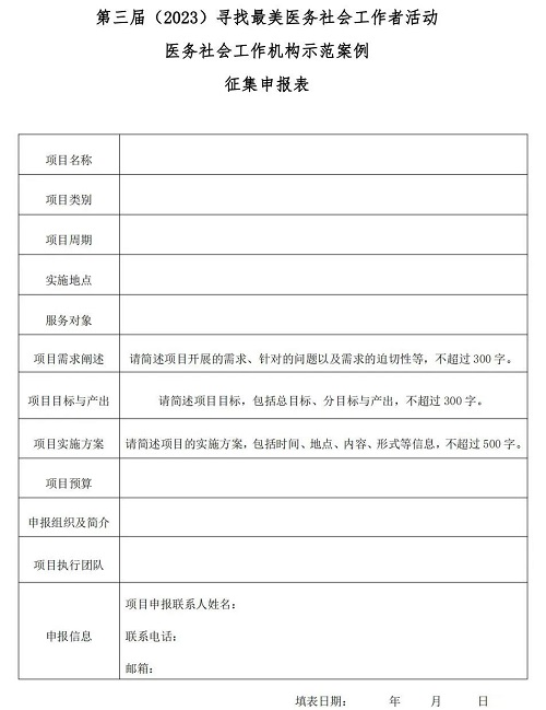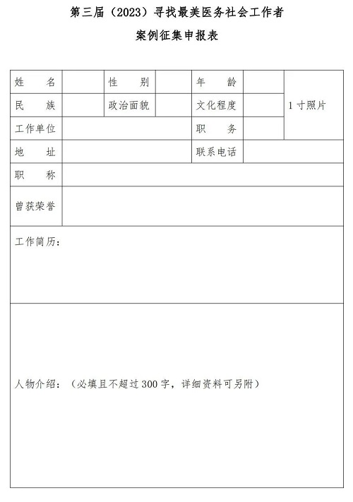 (點(diǎn)擊鏈接http://m.locksmiths-brooklyn-ny.com/files/2023/04/747923088217443f9d988ae3ff3abea0.docx下載第三屆(2023)尋找最美醫(yī)務(wù)社會(huì)工作者案例征集申報(bào)表)