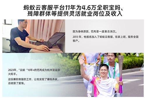 最新的報告顯示,商業(yè)價值與社會價值一體創(chuàng)造的可持續(xù)發(fā)展理念如水,正在流向螞蟻發(fā)展的更深處,帶來一些改變。螞蟻云客服平臺在11年前建立,原來只是為了解決支付寶客服不足的問題。上線之后,螞蟻很快發(fā)現(xiàn)這種打破時間和地域限制的靈活就業(yè)機會,非常適合全職寶媽、小鎮(zhèn)青年、殘障群體等。通過推出一系列助力這些群體就業(yè)的政策扶持,目前已累計為4.6萬人提供了可以兼顧家庭的靈活就業(yè)崗位并創(chuàng)造收入,其中70%受益者是鄉(xiāng)村媽媽,在家門口照顧孩子的同時更好成就自己,4%是殘障人士,通過工作收獲了生活的信心。