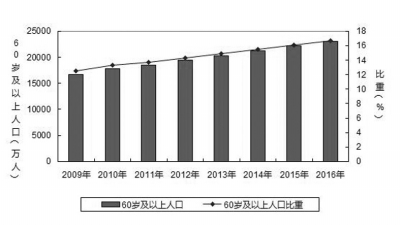 在老齡服務(wù)方面,《公報(bào)》顯示,截至2016年底,全國(guó)60歲及以上老年人口23086萬(wàn)人,占總?cè)丝诘?6.7%,其中65歲及以上人口15003萬(wàn)人,占總?cè)丝诘?0.8%。