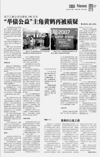 “舉債公益”主角黃鶴再被質(zhì)疑