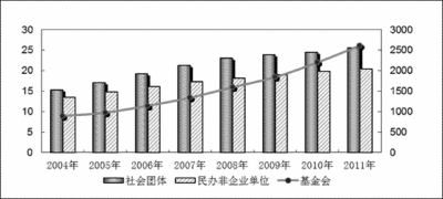 近年我國社會組織發(fā)展數(shù)量 民政部門接收的社會捐贈 注:圖中柱狀對應左側(cè)數(shù)據(jù)軸,點線對應右側(cè)數(shù)據(jù)軸 ■ 本報記者 張雪弢 日前,民政部發(fā)布《2011年社會服務發(fā)展統(tǒng)計公報》。公報顯示,2011年,全國社會服務事業(yè)費支出3229.1億元,全年各地直接接收社會捐贈款物495.0億元,救助生活無著流浪乞討未成年人17.9萬人次。 全國共有社會服務業(yè)機構129.8萬個 截至2011年底,全國共有社會服務業(yè)機構129.8萬個,比上年增長2.3%,職工總數(shù)1129.8萬人,固定資產(chǎn)總值為6989.8億元,比上年增加6.1%。社會服務業(yè)增加值2459.8億元,比上年增長22.1%,占第三產(chǎn)業(yè)的比重1.2%。截至2011年底,全國通過社會工作師考試的13421人,通過助理社會工作師考試的40755人。 全國社會服務事業(yè)費支出3229.1億元,比上年增長19.7%,占國家財政支出比重為3%,與上年持平。中央財政共向各地轉(zhuǎn)移支付社會服務事業(yè)費1808億元,比上年增長34.7%,占社會服務事業(yè)費比重56%,比上年增加了6.2個百分點。社會服務事業(yè)基本建設施工項目4533個,全年完成投資總額218.5億元,比上年增長19.4%。 全國共建立 慈善超市8802個 截至2011年底,全國共建立經(jīng)常性社會捐助工作站、點和慈善超市3.4萬個(其中:慈善超市8802個)。全年各地直接接收社會捐贈款物495.0億元,其中:民政部門直接接收社會各界捐款96.6億元,捐贈物資折款4.8億元,各類社會組織接收捐款393.6億元。 全年各地接收捐贈衣被2918.5萬件,其中:棉衣被1647.1萬件。間接接收其他部門轉(zhuǎn)入的社會捐款3.8億元,衣被588.4萬件,其中:棉衣被410.2萬件,捐贈物資折款2714.3萬元。全年有1459.7萬人次困難群眾受益。全年有950.2萬人次在社會服務領域提供了9272.6萬小時的志愿服務。 全國共有基金會 2614個 截至2011年底,全國共有社會組織46.2萬個,比上年增長3.7%。其中,全國共有社會團體25.5萬個,比上年增長4.0%。全年共執(zhí)法檢查社會團體890起,其中取締非法社會團體12起,行政處罰878起。全國共有民辦非企業(yè)單位20.4萬個,比上年增長3.1%。全年共執(zhí)法檢查民辦非企業(yè)1016起,其中取締非法民辦非企業(yè)9起,行政處罰1007起。 同時,我國共有基金會2614個,比上年增加414個,增長18.8%,其中:公募基金會1218個,非公募基金會1370個,境外基金代表機構26個。民政部登記的基金會183個。公募基金會和非公募基金會共接收社會各界捐贈219.7億元。全年共行政處罰基金會11起。 另據(jù)統(tǒng)計,截至2011年底,基層群眾自治組織共計67.9萬個,全年共有35.8萬個村(居)委會完成選舉,參與選舉的村(居)民登記數(shù)為4.5億人,參與投票人數(shù)為3.6億人。 全國有流浪兒童 救助保護中心241個 截至2011年底,全國共有兒童福利機構397個,比上年增加62個,床位6.0萬張,比上年增長20.0%。全國有流浪兒童救助保護中心241個,床位0.8萬張。全年救助生活無著流浪乞討未成年人17.9萬人次。 民政部會同財政部下達25.2億元中央財政專項資金補助各地發(fā)放孤兒基本生活費。截至2011年底,全國共有孤兒50.9萬人,其中各類社會福利機構收養(yǎng)兒童10.8萬人,社會散居孤兒40.1萬人。2011年全國辦理家庭收養(yǎng)登記31424件,其中:中國公民收養(yǎng)登記27579件,外國人收養(yǎng)登記3845件。 全國共有生活無著人員救助管理單位1788個,床位7.9萬張,其中救助管理站1547個,床位7.1萬張。全年救助城市生活無著的流浪乞討人員241.0萬人次,其中在站救助220.5萬人次,不在站救助20.5萬人次。全國共有軍休軍供機構2287個。其中軍休管理單位1960個,可提供休養(yǎng)戶數(shù)16.0萬戶;軍供站327個,床位3.8萬張。 |