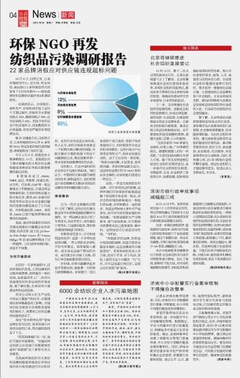 環(huán)保NGO再發(fā)紡織品污染調(diào)研報告