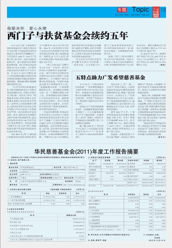 華民慈善基金會(huì)(2011)年度工作報(bào)告摘要