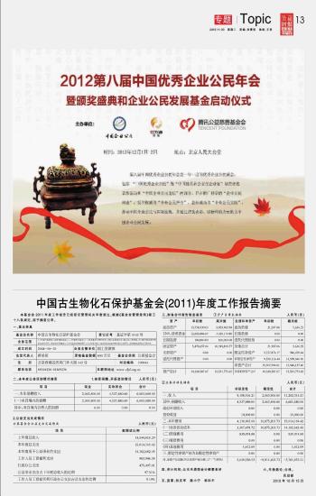 中國古生物化石保護(hù)基金會(huì)(2011)年度工作報(bào)告摘要