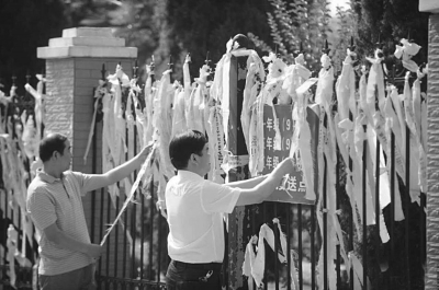 6月6日,監(jiān)利縣玉沙小學(xué),大門(mén)兩側(cè)長(zhǎng)長(zhǎng)的欄桿上掛滿了黃絲帶,上面寫(xiě)滿了孩子們的祈愿?!皷|方之星”客輪翻沉事件發(fā)生后,監(jiān)利這個(gè)港口小城民間蘊(yùn)藏的力量瞬時(shí)爆發(fā)。來(lái)自社會(huì)各界的志愿者給參加救援的官兵們送飯,為遇難者家屬提供免費(fèi)住宿餐飲,調(diào)度礦泉水、雨傘等物資,綁上黃絲帶提供免費(fèi)車輛服務(wù)。