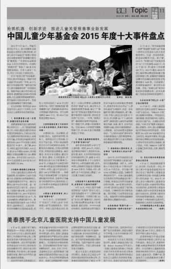 中國兒童少年基金會(huì)2015年度十大事件盤點(diǎn)