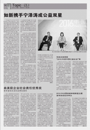華林證券榮獲“2016年度中國公益企業(yè)”獎