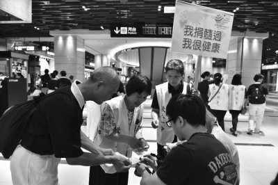 2015年,為了慶祝全球骨髓(造血干細(xì)胞)志愿捐獻(xiàn)者超過(guò)2500萬(wàn)人份,世界骨髓捐獻(xiàn)者協(xié)會(huì)發(fā)出全球倡議:將每年9月的第三個(gè)星期六定為“世界骨髓捐獻(xiàn)者日”。2017年9月16日即是第三個(gè)“世界骨髓捐獻(xiàn)者日”。圖為臺(tái)灣公益組織舉辦的驗(yàn)血、骨髓捐贈(zèng)宣傳勸募活動(dòng),以一對(duì)一說(shuō)明捐贈(zèng)方式、流程、后續(xù)守護(hù)、追蹤回訪等的方式,幫助民眾打消因不了解而產(chǎn)生的顧慮。 |