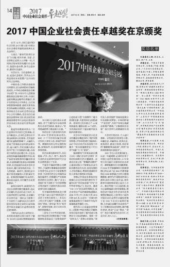2017中國企業(yè)社會責任卓越獎在京頒獎