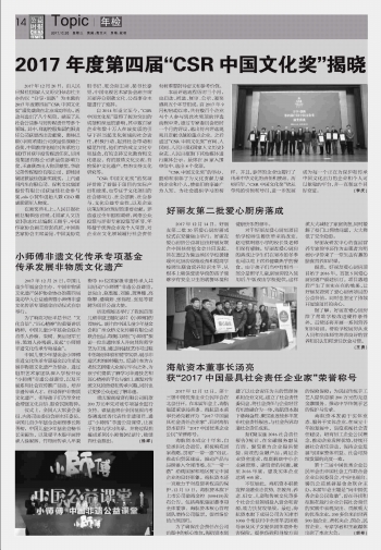 2017年度第四屆“CSR中國文化獎(jiǎng)”揭曉