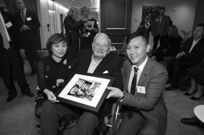 老牛兄妹基金會和洛克菲勒兄弟基金會在美國發(fā)起Richard Rockefeller學人計劃。牛犇(右一)和老洛克菲勒一起。