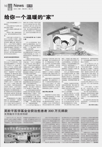 吳階平醫(yī)學基金會獲治愈患者300萬元捐款
