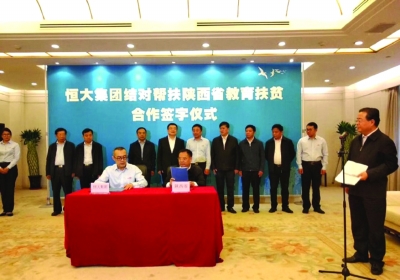 今年5月9日,恒大集團(tuán)結(jié)對(duì)幫扶陜西教育扶貧合作簽字儀式在陜西省政府舉行。恒大集團(tuán)表示,將無償捐贈(zèng)10億元,用于支持陜西省30多個(gè)貧困縣、區(qū)的中小學(xué)、幼兒園建設(shè)。項(xiàng)目計(jì)劃在三年內(nèi)分期分批組織實(shí)施。