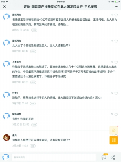 ■ 本報記者 張龍蛟 3月20日,國聯(lián)資產(chǎn)捐贈儀式在北京大學國家發(fā)展研究院舉行。此次捐贈儀式的主要內(nèi)容是表彰北大國發(fā)院金融碩士校友、EMBA2011級校友、國聯(lián)資產(chǎn)總裁王巖代表國聯(lián)資產(chǎn)向北大捐贈2000萬元人民幣。 綜合教育領(lǐng)域多年的捐贈統(tǒng)計數(shù)據(jù)來看,2000萬元的捐贈額并不十分突出,但上述捐贈報道經(jīng)其他媒體發(fā)出后沒多久卻引來不少網(wǎng)友評論,且全部是“負評”。 此次捐贈中網(wǎng)友們控訴的易通貸是什么,易通貸事件的背后反映了什么問題,此類資金為何會牽涉公益,接受捐贈時應(yīng)如何避免卷入此類事件?這一系列問題的源頭都要從近年來頻繁“爆雷”的P2P網(wǎng)貸說起。 什么是“P2P爆雷”? 所謂“P2P網(wǎng)貸”,指的是個人對個人的網(wǎng)絡(luò)借貸,其典型模式為:網(wǎng)絡(luò)信貸公司提供平臺,由借貸雙方自由競價,撮合成交。資金借出人獲取利息收益,并承擔風險;資金借入人到期償還本金,網(wǎng)絡(luò)信貸公司收取中介服務(wù)費。 而從2018年以來,P2P平臺相繼出事,“爆雷”一詞頻繁出現(xiàn)在互聯(lián)網(wǎng)上,意指P2P平臺因為逾期兌付或經(jīng)營不善問題,未能償付投資人本金利息,而出現(xiàn)的平臺停業(yè)、清盤、法人跑路、平臺失聯(lián)、倒閉等問題。 據(jù)“新華網(wǎng)思客”2018年7月13日報道,僅半個月內(nèi),就有超過40家P2P平臺相繼“爆雷”,涉及資金超過1200億元。進入2019年,P2P平臺“爆雷”事件仍時有發(fā)生。譬如,據(jù)有關(guān)媒體報道,3月28日就爆出P2P頭部平臺團貸網(wǎng)實控人唐軍、張林投案自首,警方以涉嫌非法吸收公眾存款立案偵查。 P2P作為2006年才傳入國內(nèi),2011年方迎來快速發(fā)展期的金融創(chuàng)新模式代表,近年來為何“爆雷”不止呢?綜合梳理多方分析發(fā)現(xiàn),P2P平臺“爆雷”的原因有很多,其中就包括純詐騙平臺跑路、因擠兌或壞賬倒閉、因自身合規(guī)性經(jīng)不住檢查或平臺方經(jīng)營不善而出問題等多方面的原因。 P2P公司熱衷公益慈善 梳理P2P平臺的業(yè)務(wù),不難發(fā)現(xiàn),不少P2P相關(guān)公司與其責任人都熱衷于公益慈善事業(yè)。除此次備受質(zhì)疑的P2P易通貸法定代表人、國聯(lián)資產(chǎn)總裁王巖代表國聯(lián)資產(chǎn)向北大捐贈2000萬元一事之外,另據(jù)《中國基金報》報道,2016年2月成立團貸網(wǎng)的唐軍,早在2016年10月愛佑慈善基金會舉辦的年度慈善晚宴上,就捐出5200萬元善款支持愛佑慈善基金會。 此外,擁有P2P業(yè)務(wù)“宜人貸”的宜信在2009年就推出助農(nóng)公益理財平臺“宜農(nóng)貸”,通過宜農(nóng)貸,資金出借人可以將資金出借給貧困地區(qū)的農(nóng)村借款人,支持他們發(fā)展生產(chǎn)、改善生活。 2018年7月因項目逾期、實際控制人失聯(lián)而“爆雷”的P2P平臺禮德財富自2014年開始就攜手揭陽市大學生發(fā)展基金會發(fā)起公益眾籌助學項目,助力貧困大學生。 “爆雷”會否影響相關(guān)公益項目? P2P平臺“爆雷”事件的頻發(fā),也在一定程度上也給和P2P平臺相關(guān)的公益慈善項目或活動帶來了影響。王巖代表國聯(lián)資產(chǎn)向北大捐贈2000萬元而遭到P2P平臺易通貸相關(guān)網(wǎng)友負評一事僅是其中一例。 據(jù)了解,易通貸全稱是北京易通貸金融信息服務(wù)有限公司,是一家網(wǎng)絡(luò)借貸信息中介服務(wù)平臺,屬于君石控股集團旗下公司,為出借人群和中小企業(yè)提供網(wǎng)絡(luò)借貸信息中介服務(wù)。 據(jù)天眼查顯示,北京易通貸金融信息服務(wù)有限公司和國聯(lián)資產(chǎn)管理有限公司的法定代表人和大股東都是王巖。 易通貸是目前國內(nèi)P2P網(wǎng)貸公司大軍中的一個縮影。據(jù)易通貸官網(wǎng)介紹,2011年成立的易通貸,在2013年正式上線交易,并在之后榮獲了包括“2014年度最佳P2P平臺“獎、2015年“互聯(lián)網(wǎng)金融安全領(lǐng)袖”獎、“2017企業(yè)社會責任(CSR)優(yōu)秀企業(yè)獎”等在內(nèi)的多個獎項,并于2017年5月舉辦了“愛心無限 通惠天下”易通貸關(guān)注孤獨癥兒童大型公益活動,于2017年10月舉辦關(guān)注流動兒童公益活動。值得注意的是,易通貸官網(wǎng)自稱接入了中國電子商務(wù)協(xié)會反欺詐系統(tǒng)。然而在2018年12月20日,民政部官網(wǎng)發(fā)出公告稱,對中國電子商務(wù)協(xié)會作出撤銷登記處罰,同時將中國電子商務(wù)協(xié)會列入社會組織嚴重違法失信名單。 回顧網(wǎng)友“負評”王巖代表國聯(lián)資產(chǎn)向北大捐贈一事的起因,可以發(fā)現(xiàn),2018年8月易通貸平臺出現(xiàn)提現(xiàn)困難,隨后,8月30日,易通貸發(fā)布《關(guān)于易通貸近期經(jīng)營情況的說明》承諾,公司將在12月26日恢復正常的提現(xiàn)工作。然而到截止日期后,平臺仍沒能如投資人所愿可以正常提現(xiàn)。因此,出現(xiàn)了2018年12月27日,易通貸總部遭遇投資人上門維權(quán)事件。2019年1月30日,因投資人報案,易通貸平臺已被公安經(jīng)偵部門介入調(diào)查。 據(jù)網(wǎng)貸之家報道,易通貸在中國互金協(xié)會信披系統(tǒng)上披露的數(shù)據(jù)顯示,截至2019年2月28日,平臺借貸余額為14.58億元,逾期金額高達17.83億元,金額逾期率高達119.55%。2019年3