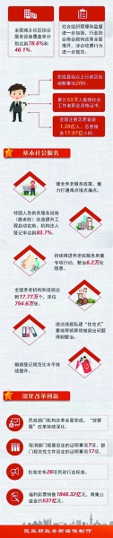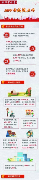 “民政工作關(guān)系民生、連著民心,是社會建設(shè)的兜底性、基礎(chǔ)性工作?!?019年4月2日在北京召開的第十四次全國民政會議,傳達了習(xí)近平總書記對民政工作作出的重要指示。 認真貫徹習(xí)近平總書記重要指示精神,一年來,各級民政部門緊緊圍繞中心、堅決服務(wù)大局,深化改革創(chuàng)新,各項工作取得新進展、新成效。 兜底保障能力明顯增強 河北、廣西等創(chuàng)新落實特殊困難群體“單人戶”低保政策,云南系統(tǒng)規(guī)范完善農(nóng)村低保制度,陜西統(tǒng)籌構(gòu)建“六張保障網(wǎng)”,甘肅、青海等部署開展脫貧攻堅沖刺清零篩查專項行動。加大羅霄山片區(qū)扶貧和定點扶貧縣扶貧力度,江西遂川縣、蓮花縣實現(xiàn)脫貧摘帽…… 2019年,聚焦打贏精準脫貧攻堅戰(zhàn),民政兜底保障能力明顯提升—— 出臺加強分散供養(yǎng)特困人員照料服務(wù)、強化臨時救助兜底保障政策;將資金和各項政策措施向“三區(qū)三州”等深度貧困地區(qū)傾斜;深入開展農(nóng)村低保專項整治; 廣泛引導(dǎo)和動員社會組織特別是慈善組織參與脫貧攻堅,全國4.1萬個社會組織開展6.2萬個扶貧項目,投入資金超過600億元; …… 各地民政部門群策群力,發(fā)達省份加強對口幫扶,貧困地方聚力攻堅,1796萬建檔立卡貧困人口納入農(nóng)村低?;蛱乩藛T救助供養(yǎng),繼續(xù)保持農(nóng)村低保標準動態(tài)達到或超過國家扶貧標準。 在全力做好脫貧攻堅工作的同時,民政部門穩(wěn)步提升基本民生保障水平,更好滿足廣大困難群眾和特殊群體的基本需求—— 加大對生活困難下崗失業(yè)人員基本生活的保障力度,針對部分食品價格上漲,及時啟動社會救助和保障標準與物價上漲掛鉤聯(lián)動機制; 建立事實無人撫養(yǎng)兒童國家保障制度,填補了兒童福利領(lǐng)域制度的空白,大約50萬事實無人撫養(yǎng)兒童從2020年1月1日起將獲得由政府發(fā)放的基本生活補貼; 聯(lián)合財政部、中國殘聯(lián)建立殘疾人兩項補貼標準動態(tài)調(diào)整機制,分別涉及1000多萬、1300多萬殘疾人; 加大慈善事業(yè)促進力度,截至2019年11月底,全國登記認定慈善組織超過7500個,成立慈善信托261筆。 基層社會治理進一步夯實 10月29日下午5點,貴州都勻市,幾十個小學(xué)生陸續(xù)放學(xué),來到了思源社區(qū)辦公樓。在閱覽室里,都勻市十三小學(xué)二年級一班的彭興寶拿出作業(yè)本,寫了一會兒,“小黑甲”指出了他的一處錯誤。 “穿‘小黑甲’的都是‘四點半課堂’的社工?!痹诙紕蚴忻裾种С窒拢?4名社工來到社區(qū),承擔了課外輔導(dǎo)老師的角色。 夯基礎(chǔ),強基層,是近年來民政工作的一項重點。 2019年,民政部門強化黨領(lǐng)導(dǎo)基層群眾自治和社會組織管理,基層社會治理進一步夯實—— 實施城鄉(xiāng)社區(qū)服務(wù)體系建設(shè)規(guī)劃,加快發(fā)展社區(qū)生活性服務(wù),截至2019年11月底,全國城鄉(xiāng)社區(qū)綜合服務(wù)設(shè)施覆蓋率分別達到78.6%和46.1%; 強化社會組織管理和監(jiān)督,出臺加強社會組織政治建設(shè)、規(guī)范行業(yè)協(xié)會商會涉企收費等政策規(guī)定,全面推開行業(yè)協(xié)會商會脫鉤改革,常態(tài)化公開社會組織違法失信名單信息; 社工人才隊伍和志愿者隊伍建設(shè)取得新進展,舉辦首次高級社會工作師考試,志愿服務(wù)隊伍持續(xù)壯大,截至12月20日,全國注冊志愿者逾1.39億,志愿服務(wù)18億小時; …… 行政區(qū)劃調(diào)整和地名清理規(guī)范,也是社會各界尤其是基層群眾關(guān)注的一項重要工作。 2019年,民政部門報請國務(wù)院批準縣級以上行政區(qū)劃調(diào)整事項20件,優(yōu)化8個大中城市市轄區(qū)規(guī)模結(jié)構(gòu),新增12個中小城市,探索特大鎮(zhèn)設(shè)市模式,建成并上線了中國·國家地名信息庫;聯(lián)合舉辦《中國地名大會》;完成14條省界聯(lián)檢和3條省界界樁更換。 基本社會服務(wù)水平更大幅度提升 “婚姻登記的效率那叫一個‘十分快’?!苯衲?月14日,在廣州市白云區(qū)民政局婚姻登記處的服務(wù)大廳,王佳和妻子手捧大紅色的結(jié)婚證,幸福滿滿。 “早就想到今天會人山人海,以為會排很長時間的隊,真想不到會這么快,還不用花一分錢。”王佳開心地說。 “全城通辦”、網(wǎng)上預(yù)約讓婚姻登記“快”了,取消婚姻登記費則讓結(jié)婚成本“降”了。這些變化,得益于民政部門在婚姻登記服務(wù)方面的新舉措。 2019年,民政部門著力打通難點堵點,提升基本社會服務(wù)水平—— 婚姻檔案的信息化工作基本完成,加強涉外婚姻管理,持續(xù)提高婚姻登記規(guī)范化水平; 牽頭建立養(yǎng)老服務(wù)部際聯(lián)席會議機制,取消養(yǎng)老機構(gòu)設(shè)立許可,規(guī)范備案管理,深化居家社區(qū)養(yǎng)老服務(wù)改革試點,推進解決大城市養(yǎng)老難問題,持續(xù)推進養(yǎng)老院服務(wù)質(zhì)量專項行動; 聯(lián)合11個部門開展違法違規(guī)私建“住宅式”墓地等突出問題的專項摸排和整治,發(fā)揮殯葬改革試點地方的輻射帶動作用,推進移風易俗; …… 成績來之不易,前景催人奮進。 在以習(xí)近平同志為核心的黨中央堅強領(lǐng)導(dǎo)下,廣大民政工作者不忘初心、牢記使命,攻堅克難、開拓創(chuàng)新,正奮力書寫著民政