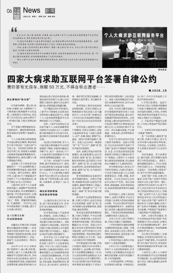四家大病求助互聯(lián)網(wǎng)平臺(tái)簽署自律公約