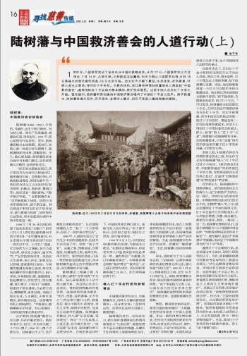 陸樹藩與中國救濟善會的人道行動(上)