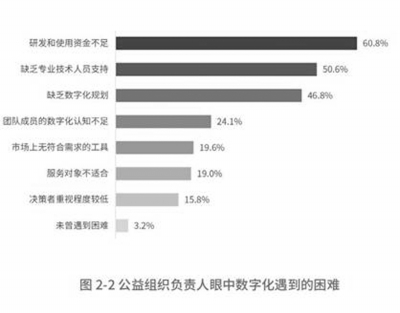■ 本報記者 皮磊 5月20日,2021中國互聯(lián)網(wǎng)公益峰會在重慶開幕,本次峰會以‘?dāng)?shù)字共建·公益流深’為主題。峰會上,騰訊基金會聯(lián)合騰訊研究院制作的《2021公益數(shù)字化研究報告》正式發(fā)布。該研究通過問卷調(diào)研了270家公益組織,覆蓋國內(nèi)28個省市以及14個公益服務(wù)領(lǐng)域,涉及不同規(guī)模和發(fā)展階段的機構(gòu),并開展深度訪談15場,致力于聽取并傳遞行業(yè)相關(guān)方的聲音,力求更準(zhǔn)確地洞察公益數(shù)字化現(xiàn)狀和未來趨勢。 同時,報告通過梳理公益數(shù)字化的內(nèi)涵、‘四浪疊加’的歷程及驅(qū)動因素,展現(xiàn)數(shù)字社會下公益數(shù)字化的必由之路。調(diào)研顯示,公益數(shù)字化的發(fā)展“任重道遠(yuǎn)”,面臨投入不足、人才不足、供給不足等資源瓶頸。 ‘研究報告指出,我們對公益數(shù)字化有著迫切的需求,但是起點還是很低。主要體現(xiàn)在三個方面的嚴(yán)重不足,就是投入不足、能力不足、工具和技術(shù)的供給不足?!v訊公司高級副總裁、騰訊公益慈善基金會理事長郭凱天對研究報告進行了解讀,‘其次,從實踐的角度,大家對公益數(shù)字化的方向、目標(biāo)都有著基本的共識,數(shù)字化可以更好地服務(wù)于公益事業(yè)的幾個重要發(fā)展方面,那就是提高信任感、提升專業(yè)度、加快敏捷性?!?/p> ‘除此以外,在公益數(shù)字化方面,中國的公益組織已經(jīng)摸索了一些很有價值的嘗試。研究報告收錄分析了典型的有益的案例?!鶆P天說,比如愛佑的善款臺賬,真愛夢想的運營在地化、業(yè)務(wù)數(shù)據(jù)化,扶貧基金會愛家鄉(xiāng)評論區(qū)功能,千聊繁星公益計劃為公益機構(gòu)提供技術(shù)、傳播、服務(wù)和資源落地四個方面的支持;還有騰訊支持開發(fā)者基于小程序開發(fā)更多的公益場景和公益項目等,都是有益的探索。 募資金額區(qū)間分布差異較小 從調(diào)研的公益組織基本情況來看,類型以社會服務(wù)機構(gòu)為多,公募基金會次之,成立時間主要集中在2013年至2021年。 從調(diào)研公益組織的地域分布看,全國性機構(gòu)占比例達(dá)35%;區(qū)域型機構(gòu)(業(yè)務(wù)僅在單一、固定區(qū)域開展)中,排名靠前的省份是廣東、四川和湖南,貴州位列第15。在公益組織的運營領(lǐng)域方面,教育領(lǐng)域占比最高,其后是助殘、婦女兒童、扶貧與農(nóng)村發(fā)展。 從調(diào)研公益組織的年募資金額來看,募資金額區(qū)間的分布差異較小,募資小于20萬元與超過5000萬元的機構(gòu)占比相對較高。從項目開展數(shù)量來看,絕大部分機構(gòu)一年開展的項目數(shù)量集中在10個以內(nèi)。 報告顯示,從員工規(guī)模來看,全職員工為1至5人的機構(gòu)相對較多,近八成的組織全職員工規(guī)模小于20人。近五成的公益組織兼職或志愿團隊小于30人,也有31%的組織擁有100人以上的兼職或志愿者團隊。 機構(gòu)數(shù)字化投入有限 當(dāng)前中國公益數(shù)字化發(fā)展緩慢,在公益組織運作的不同環(huán)節(jié)呈現(xiàn)差異化的數(shù)字化程度,不同規(guī)模的機構(gòu)有不同的數(shù)字化發(fā)展訴求。雖然行業(yè)整體面臨數(shù)字化支持困難、市場規(guī)模局限、專業(yè)人才缺乏等挑戰(zhàn),但公益組織仍期待借助數(shù)字化實現(xiàn)機構(gòu)可持續(xù)成長,推動行業(yè)生態(tài)建設(shè)。 調(diào)研發(fā)現(xiàn),盡管近七成公益組織負(fù)責(zé)人(法人/理事長/秘書長)迫切地想提升機構(gòu)數(shù)字化程度,但其中46%的負(fù)責(zé)人表示仍未破解“如何做數(shù)字化”的難題,不知道如何將數(shù)字化建設(shè)融入機構(gòu)發(fā)展規(guī)劃中。 專家表示,公益組織希望“把錢花在刀刃上”,而數(shù)字化帶來的成效并非一蹴而就。公益數(shù)字化尚未取得業(yè)內(nèi)廣泛驗證和推廣,不少公益組織處于觀望狀態(tài),在成本投入上有所保留。 調(diào)研顯示,不論募資規(guī)模多少,66%的公益組織投入數(shù)字化的比重在募資總額的1%以下,行業(yè)整體投入信心和力度不足。這種有想法但不投入的原因可以歸結(jié)為:人才、資金、產(chǎn)品等多方掣肘。 例如公益組織仍未找到“如何做數(shù)字化”的答案,對很多公益組織來說,數(shù)字化是“可選項”而非“必選項”、短期數(shù)字化成效不明顯,長期數(shù)字化投入大、持續(xù)難,使得多數(shù)組織和資方保持觀望態(tài)度、推進行動遲緩。 從資源限制來看,面臨“資金、技術(shù)、人才”三重壁壘。公益組織數(shù)字化程度不是政府、企業(yè)、基金會等資方關(guān)注和扶持的重點,缺乏利好支持和積極信號。 另一方面,傳播和籌款作為公益數(shù)字化的熱點,歷經(jīng)數(shù)年發(fā)展,接受度和普及度較高。調(diào)研顯示,85%的公益組織已實現(xiàn)互聯(lián)網(wǎng)平臺籌款,88%的組織已開通社交媒體賬號。 然而面向公益服務(wù)環(huán)節(jié)(例如需求管理、執(zhí)行、評估等)技術(shù)產(chǎn)品卻因服務(wù)場景差異大、個性化程度高,需要定制化開發(fā)而進展緩慢,仍有近五成公益組織期待利用數(shù)字化進行服務(wù)創(chuàng)新,在需求識別、執(zhí)行與評估等環(huán)節(jié)優(yōu)化服務(wù)鏈路。 由于使用平臺不統(tǒng)