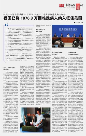我國(guó)已將1076.8萬(wàn)困難殘疾人納入低保范圍