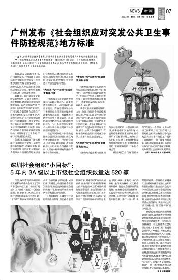 深圳社會(huì)組織“小目標(biāo)”:5年內(nèi)3A級(jí)以上市級(jí)社會(huì)組織數(shù)量達(dá)520家