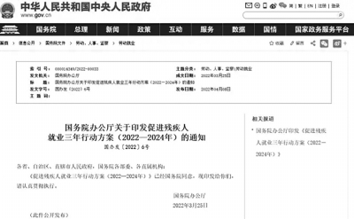 ■ 本報記者 李慶 4月8日,國務院辦公廳印發(fā)《促進殘疾人就業(yè)三年行動方案(2022—2024年)》(以下簡稱《行動方案》),對當前和今后一個時期加快推進殘疾人就業(yè)工作,實現(xiàn)“十四五”時期殘疾人較為充分、較高質量的就業(yè)目標作出部署。 《行動方案》圍繞貫徹落實習近平總書記關于殘疾人事業(yè)的重要指示批示精神和黨中央、國務院決策部署,明確了2022—2024年開展促進殘疾人就業(yè)專項行動的任務目標、主要措施和保障條件等內容。 三年內新增殘疾人就業(yè) 100萬人 就業(yè)是鞏固拓展殘疾人脫貧攻堅成果,改善殘疾人生活,幫助殘疾人邁向共同富裕的關鍵。近年來,黨中央、國務院高度重視殘疾人等就業(yè)困難群體就業(yè)工作。 其中,黨的十九屆四中、五中全會對健全特殊群體就業(yè)支持體系、加強殘疾人就業(yè)幫扶等提出要求。習近平總書記指出,讓廣大殘疾人安居樂業(yè)、衣食無憂,過上幸福美好的生活,是我們黨全心全意為人民服務宗旨的重要體現(xiàn),是我國社會主義制度的必然要求。 近年來,中央各有關部門出臺了關于促進和發(fā)展殘疾人按比例就業(yè)、輔助性就業(yè)、集中就業(yè)、自主就業(yè)、靈活就業(yè)等各類就業(yè)形式的專項政策;制定了殘疾人就業(yè)保障金征管用、稅收優(yōu)惠減免、政府采購優(yōu)先、職業(yè)技能提升等各類扶持辦法。 2019年,國務院常務會議研究、國家發(fā)展改革委等五部門聯(lián)合印發(fā)《關于完善殘疾人就業(yè)保障金制度更好促進殘疾人就業(yè)的總體方案》。2021年10月,中國殘聯(lián)會同中央組織部、中央編辦、人力資源社會保障部、國務院國資委五部門共同印發(fā)了《機關、事業(yè)單位、國有企業(yè)帶頭安排殘疾人就業(yè)辦法》。目前,國家殘疾人就業(yè)政策體系相對完備,通過開展專項行動以有效匯集、落實、推廣現(xiàn)有扶持政策,讓更多符合條件的殘疾人實現(xiàn)就業(yè)應當成為當前和今后一個時期的工作重點。 《行動方案》提出,將幫扶有就業(yè)需求和就業(yè)條件的城鄉(xiāng)未就業(yè)殘疾人作為今后三年階段性工作的重點。 《行動方案》要求機關、事業(yè)單位帶頭安排殘疾人就業(yè)行動,確保“十四五”期間編制50人(含)以上的省級、地市級機關和編制67人(含)以上的事業(yè)單位(中小學、幼兒園除外),安排殘疾人就業(yè)未達到規(guī)定比例的,至少安排一名殘疾人就業(yè)。 就此,《行動方案》提出,以有就業(yè)需求和就業(yè)條件的城鄉(xiāng)未就業(yè)殘疾人為主要對象,更好發(fā)揮政府促進就業(yè)的作用,進一步落實殘疾人就業(yè)創(chuàng)業(yè)扶持政策,加大殘疾人職業(yè)技能培訓力度,不斷提升殘疾人就業(yè)服務質量和效益,穩(wěn)定和擴大殘疾人就業(yè)崗位。2022—2024年共實現(xiàn)全國城鄉(xiāng)新增殘疾人就業(yè)100萬人,殘疾人就業(yè)創(chuàng)業(yè)能力持續(xù)提升,殘疾人就業(yè)權益得到更好保障,推動形成理解、關心、支持殘疾人就業(yè)創(chuàng)業(yè)的良好社會環(huán)境。 三年內實施“十項行動” 《行動方案》決定,在三年內實施“十項行動”: 一是機關、事業(yè)單位帶頭安排殘疾人就業(yè)行動。首次明確要求建立統(tǒng)計和公示制度,切實增加機關和事業(yè)單位安排殘疾人就業(yè)的透明度。同時對省、市、縣、鄉(xiāng)四級都提出了安排殘疾人就業(yè)的具體要求; 二是國有企業(yè)安排殘疾人就業(yè)行動; 三是民營企業(yè)安排殘疾人就業(yè)行動。要求通過組織符合條件的國有企業(yè)、民營企業(yè)拿出一批崗位定向招錄殘疾人就業(yè),三年內爭取集中幫助較大規(guī)模的殘疾人就業(yè),對未按比例安排殘疾人就業(yè)的,則通過及時足額繳納殘保金、納入企業(yè)社會責任報告予以規(guī)范; 四是殘疾人組織助殘就業(yè)行動,要求對近年來不同類別殘疾人就業(yè)典型案例和成功經(jīng)驗進行整理推廣,打造殘疾婦女“美麗工坊”等品牌,幫助各地各類殘疾人組織或助殘就業(yè)組織找到工作方向,更有工作遵循; 五是就業(yè)困難殘疾人就業(yè)幫扶行動,要求地市級普遍開展輔助性就業(yè)項目勞動調配工作,以解決輔助性就業(yè)勞動項目不足的短板; 六是農村殘疾人就業(yè)幫扶行動,著重延續(xù)殘疾人脫貧攻堅政策措施和幫扶機制,以防止已經(jīng)脫貧殘疾人的再度返貧; 七是殘疾人大學生就業(yè)幫扶行動,提出對殘疾人大學生提前開展就業(yè)服務和納入公共就業(yè)服務的要求,以提高對殘疾人大學生的就業(yè)服務質量和覆蓋面; 八是盲人按摩就業(yè)促進行動,著重提出加強盲人按摩機構建設和完善盲人醫(yī)療按摩制度,以補足盲人按摩基礎能力建設的薄弱環(huán)節(jié); 九是殘疾人就業(yè)服務提升行動,通過開展“四個一”活動,對年齡段未就業(yè)殘疾人進行準確摸底,同時要求加大就業(yè)服務的規(guī)范化、社會化水平; 十是殘疾人職業(yè)技能提升行動,提出根據(jù)職業(yè)能力評估結果開展精準化培訓,同時大力提倡殘疾人接受中高等職業(yè)教育,切實提升殘疾人群體的就業(yè)能力。 此外,《行動方案》明確了政策、資金、信息和組織等方面的保障條件。要求各級人民政府殘疾人工作委員會加強組織協(xié)調,督促