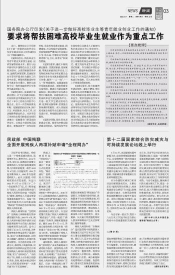 要求將幫扶困難高校畢業(yè)生就業(yè)作為重點工作