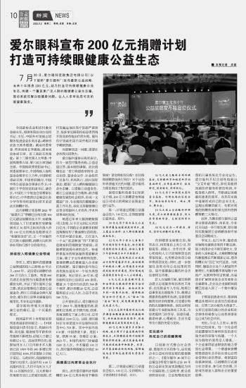 愛爾眼科宣布200億元捐贈(zèng)計(jì)劃 打造可持續(xù)眼健康公益生態(tài)