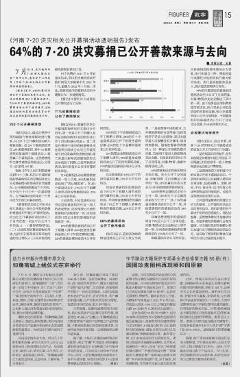《河南7·20洪災(zāi)相關(guān)公開募捐活動透明報告》發(fā)布 64%的7·20洪災(zāi)募捐已公開善款來源與去向