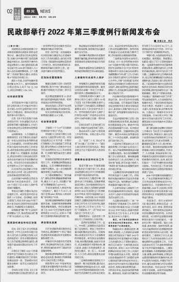 民政部舉行2022年第三季度例行新聞發(fā)布會