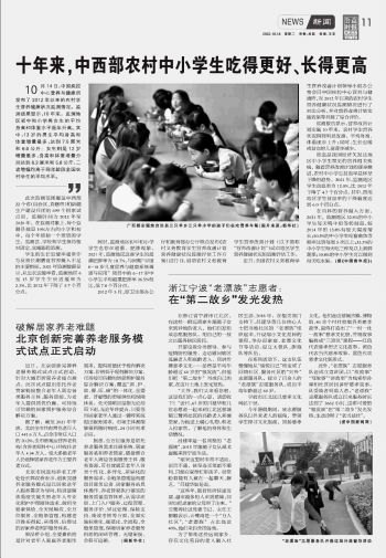 十年來,中西部農(nóng)村中小學(xué)生吃得更好、長得更高