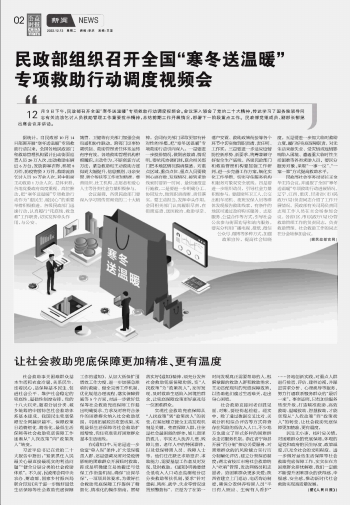 民政部組織召開全國“寒冬送溫暖”專項救助行動調度視頻會