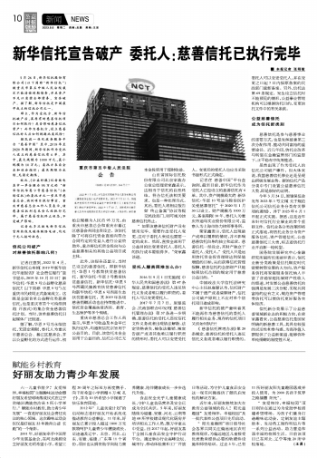 新華信托宣告破產(chǎn) 委托人:慈善信托已執(zhí)行完畢