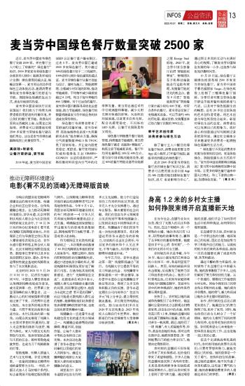 麥當勞中國綠色餐廳數(shù)量突破2500家