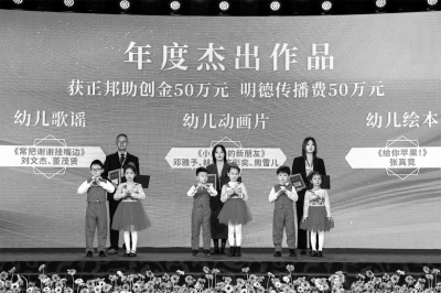 ■ 本報記者 高文興 當(dāng)看到郵件通知我們這首歌獲評為年度杰出作品時,我們始終不敢相信這是真事。我工作了40多年,寫的作品很多,但是從來沒有得到過如此高的肯定?!?023年11月26日,來自山西大同的劉文杰成為主角,站在北京飯店金色大廳的聚光燈下,年過花甲的他,心情異常激動。 劉文杰與團隊在一年前共同創(chuàng)作的幼兒歌謠《常把謝謝掛嘴邊》獲得首屆“正邦說”幼兒德育作品征集活動的最高認可,接到通知的當(dāng)晚,他說“真是久久不能入睡”。 人的0至6歲,是“最可塑、具有高度學(xué)習(xí)能力的階段”,也是德育培養(yǎng)的關(guān)鍵期,但我國幼兒德育教育發(fā)展目前還存在眾多難點?!罢钫f”幼兒德育作品征集活動正嘗試在這一領(lǐng)域進行有益探索,通過公益方式匯集社會力量共創(chuàng)幼兒德育作品,立體式推進幼兒德育教育。 做德育教育的“種樹人” 為什么要如此專注幼兒德育?或許從“三歲看大,七歲看老”這句俗語中便能略知一二。 而這也高度契合深圳市正邦公益基金會秘書長陳雅的觀念?!拔覀儓孕牛⒆邮敲褡宓奈磥?。祖輩的智慧告訴我們,0-6歲是人之一生極其重要的時期,6歲以前,培養(yǎng)好的品行、習(xí)慣至關(guān)重要?!标愌胚@樣說。 近幾年來,黨中央國務(wù)院針對教育發(fā)布了一系列重要文件,育人成為焦點,更強調(diào)“培根樹魂、立德樹魂”。2022年3月,教育部發(fā)布的《幼兒園保育教育質(zhì)量評估指南》明確將“黨政建設(shè)、品德啟蒙、科學(xué)理念”作為幼兒園“辦園方向”評估的三項關(guān)鍵指標(biāo)。從幼兒開始落實“立德樹人”,進行“品德啟蒙”,自幼注重培養(yǎng)良好的品德和行為習(xí)慣,已經(jīng)成為廣大學(xué)前教育工作者、家長及全社會的共識,并且取得了很多成就。 當(dāng)前,幼兒德育教育尚存在一些問題。中國少年兒童文化藝術(shù)基金會理事長闞麗君表示,目前我國幼兒德育教育的廣度、深度、高度都不夠,尤其是創(chuàng)作者對幼兒德育領(lǐng)域靜心、專心、恒心都嚴(yán)重不足。從幼兒德育發(fā)展的現(xiàn)實情況來看,其社會關(guān)注度、教育資源如德育作品的供給能力等與其重要性之間不匹配,具體表現(xiàn)為傾心幼兒德育教育的專家力量不足,針對性、系統(tǒng)性、科學(xué)性研究成果欠缺,內(nèi)涵雋永、形式精良、寓教于樂的本土作品稀少,兒童素養(yǎng)教育任重道遠,需要全社會共同關(guān)注和參與。 “我們要做德育教育的‘種樹人’,而不是等出了問題之后做‘滅火隊’。”闞麗君在首屆“正邦說”幼兒德育作品征集頒授盛典上如是說。 社會共創(chuàng)8000多部 幼兒德育作品 推進幼兒德育教育的路徑有很多種,比如家庭教育、學(xué)校教育,但所有針對幼兒的德育教育都缺少體系化承載知識的作品。 為此,深圳市正邦公益基金會與中國少年兒童文化藝術(shù)基金會從社會共創(chuàng)德育教育作品為切入口,以培育幼兒社會主義核心價值觀、促進其健康成長為公益開展主線,以“為文明中國培育擁有良好品德的未來公民”為使命,以“讓更多幼兒得到精心的德育培養(yǎng)”為愿景,推進幼兒德育教育。 從2022年7月啟動“正邦說”幼兒德育作品征集活動以來,向全社會征集適合0-6歲幼兒的德育作品,在幼兒園、家庭及社會各層面大力傳播并深入應(yīng)用,讓越來越多的幼兒得到精心的德育培養(yǎng)。 經(jīng)過歷時一年多的征集與評審,在超過8000部作品中,幼兒歌謠《常把謝謝掛嘴邊》、幼兒繪本《給你蘋果!》、幼兒動畫片《小點點的新朋友》三部幼兒德育作品脫穎而出,獲評第一屆“正邦說”幼兒德育作品征集活動“年度杰出作品”。 為幼兒系好人生的 第一??圩?/p> “德育是一個民族的立身之本,屹立之源。”陳雅表示,此次征集來優(yōu)秀幼兒德育作品,除了獲得專項經(jīng)費支持外,還將推動進入幼兒園德育培養(yǎng)課程之中。她說,幼兒期是個體社會化起始、道德養(yǎng)成的關(guān)鍵階段,幼兒期的德育對個人成長和國家進步影響深遠。因此,希望借助“正邦說”幼兒德育作品征集活動,吸引更多懷才抱德的有識之士投身幼兒德育這項崇高而神圣的事業(yè)。 在清華大學(xué)國學(xué)研究院院長陳來看來,盡管首屆活動征集來的幼兒德育教育作品過硬的佳作有限,但至少摸清了中國幼兒德育現(xiàn)狀,開創(chuàng)了幼兒德育教育新路徑,創(chuàng)新了德育教育新模式,為中國德育養(yǎng)育的發(fā)展培育出新土壤。 為進一步推動公益征集來的優(yōu)秀作品得到傳播與應(yīng)用,在“正邦說”幼兒德育作品征集活動頒授盛典上,中國少年兒童文化藝術(shù)基金會與深圳市正邦公益基金會聯(lián)合國內(nèi)多家幼兒園成立“藝教工程幼兒園園長聯(lián)盟”,以推動優(yōu)秀的幼兒德育作品進入幼兒德育培養(yǎng)課程體系之中,為我國幼兒成長系好人生的第一??圩?。 “建設(shè)教育強國,基點在基礎(chǔ)教育,學(xué)前教育是基礎(chǔ)教育的基礎(chǔ),是終身學(xué)習(xí)的開端?!苯逃拷處煿ぷ魉靖彼鹃L韓勁紅表示,希望藝教工程幼兒園園長聯(lián)盟發(fā)揮引領(lǐng)作用,聚焦學(xué)前教育高質(zhì)量發(fā)展目標(biāo),合力打造高水平的學(xué)前教育教師發(fā)展平臺,努力培養(yǎng)一批有影響力的教育家型教師,
