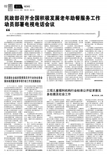 民政部召開(kāi)全國(guó)積極發(fā)展老年助餐服務(wù)工作動(dòng)員部署電視電話會(huì)議