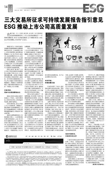 三大交易所征求可持續(xù)發(fā)展報告指引意見 ESG推動上市公司高質(zhì)量發(fā)展