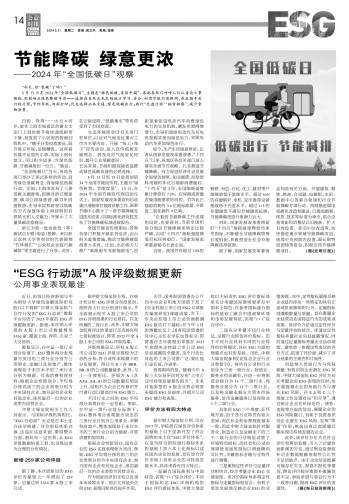 “ESG行動派”A股評級數(shù)據(jù)更新